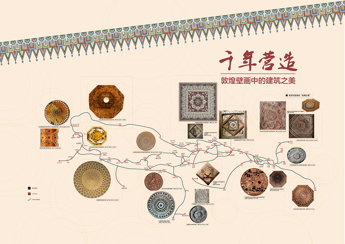 此次展览旨在邀请观众通过多元途径看到的敦煌壁画中的建筑形制和意境,作为中华民族记忆与文化的载体,其中饱含的深邃内涵:中华文明的礼仪、智慧、审美等,以空间营造为缩影,跃然璧上。更期待观众参与其中,从中汲取营养,重拾智慧的基因,寻找根植于心的中华文化生命。行至当代,敦煌壁画里的空间图像转化为诸多实体和数字的展品,以此期待更多观众将其古代思想意蕴变现成现代创作的源流,这正是敦煌千年不朽的要义——海纳百川、历久弥新。