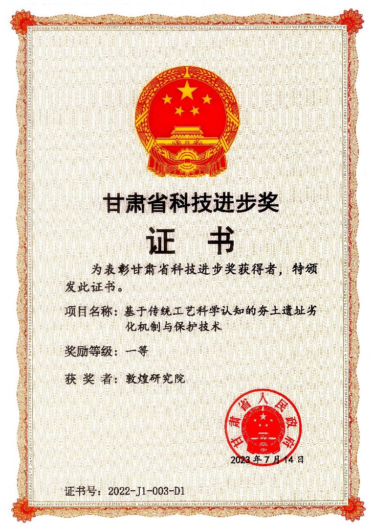 2月2日,甘肃省强科技行动工作推进会暨科学技术(专利)奖励大会在兰州召开。由我院牵头,联合兰州大学、西北大学、兰州理工大学、敦煌研究院文物保护技术服务中心、甘肃莫高窟文化遗产保护设计咨询有限公司申报的“基于传统工艺科学认知的夯土遗址劣化机制与保护技术”,荣获2022年度甘肃省科技进步奖一等奖。
