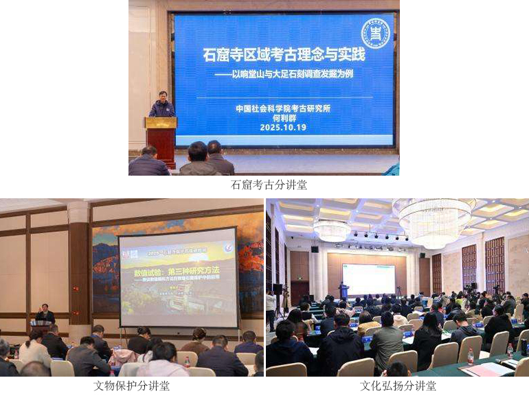 三个分讲堂如三股清流,各自奔涌又相互交融。文物保护会场内,裴强强研究馆员结合实践案例,将我国石窟寺文物保护的发展历程娓娓道来,唐春安教授以数值模拟为钥,探寻石窟永续保护的科学路径;石窟考古会场内,何利群研究员提出区域考古的新视角,冉万里教授从舍利瘗埋制度的细节中抽丝剥茧,破译古代文明交融的密码;文化弘扬会场内,徐红罡教授以可持续发展为纲,张小刚研究馆员则以灿烂敦煌艺术为纬,织就一幅文化传播的锦绣画卷。