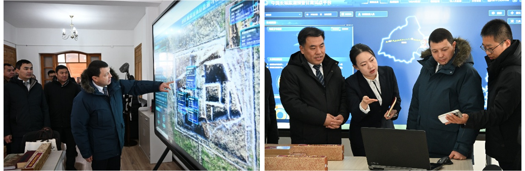 吉尔吉斯共和国文化、信息和青年政策部部长米尔别克•马姆别塔利耶夫、第一副部长索尤斯别克•纳德尔别科夫等一行察看联合实验室监测平台