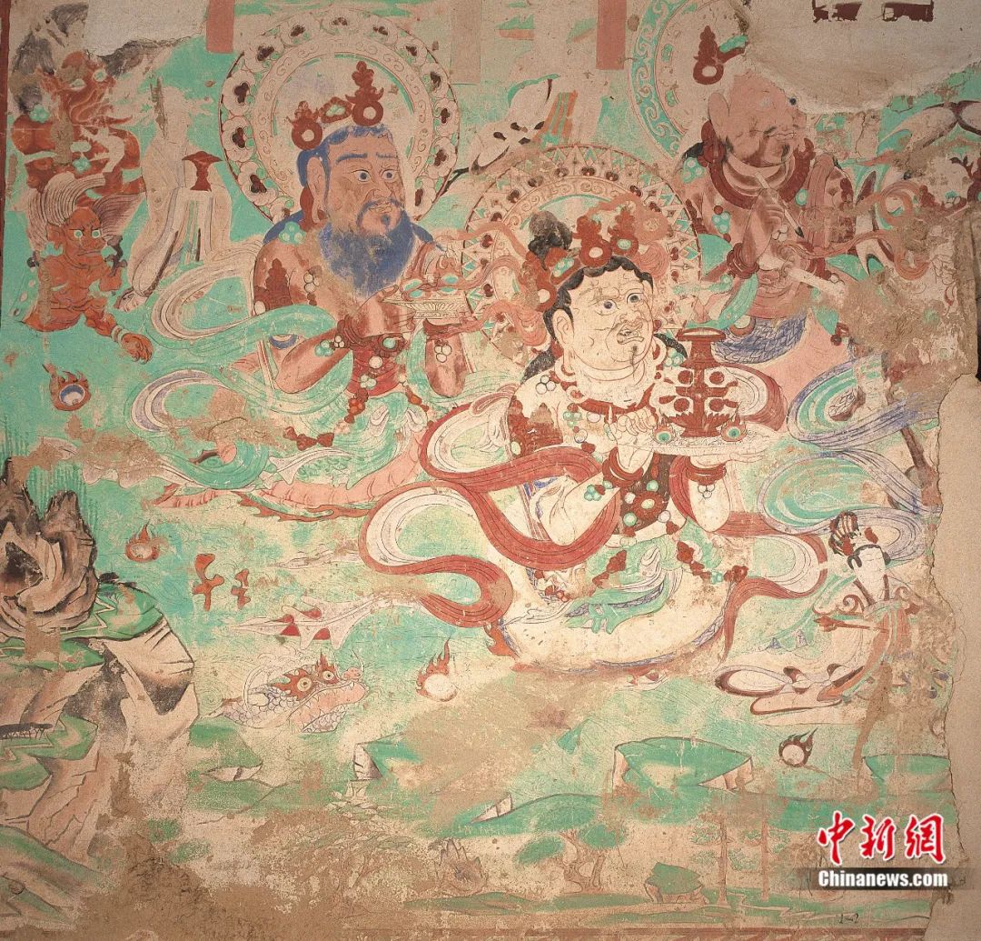 榆林窟第25窟北壁弥勒经变中守宝神龙。敦煌研究院供图