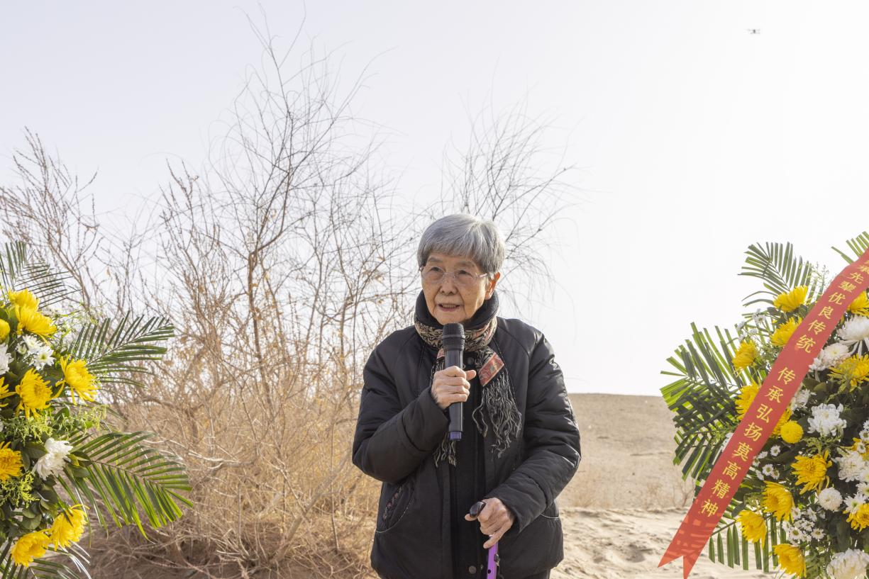 在庄严肃穆的气氛中,全体干部职工怀着无比崇敬的心情向长眠于此的常书鸿先生、段文杰先生等30余位守护敦煌莫高窟的先辈们敬献了花圈、花篮,鞠躬、默哀致敬,深切表达对敦煌文物事业先辈们的追忆和哀思。随后,樊锦诗回顾了我院80年来不平凡的发展历程,深情讲述了先辈们“献了青春献终身,献了终身献子孙”的感人事迹,充分阐释了“坚守大漠、甘于奉献、勇于担当、开拓进取”莫高精神的深刻内涵,号召广大干部职工要继承先辈遗志,不能骄傲自满、止步不前,要继续艰苦奋斗、锐意进取,踏踏实实做好本职工作,让莫高窟永久保存下去。