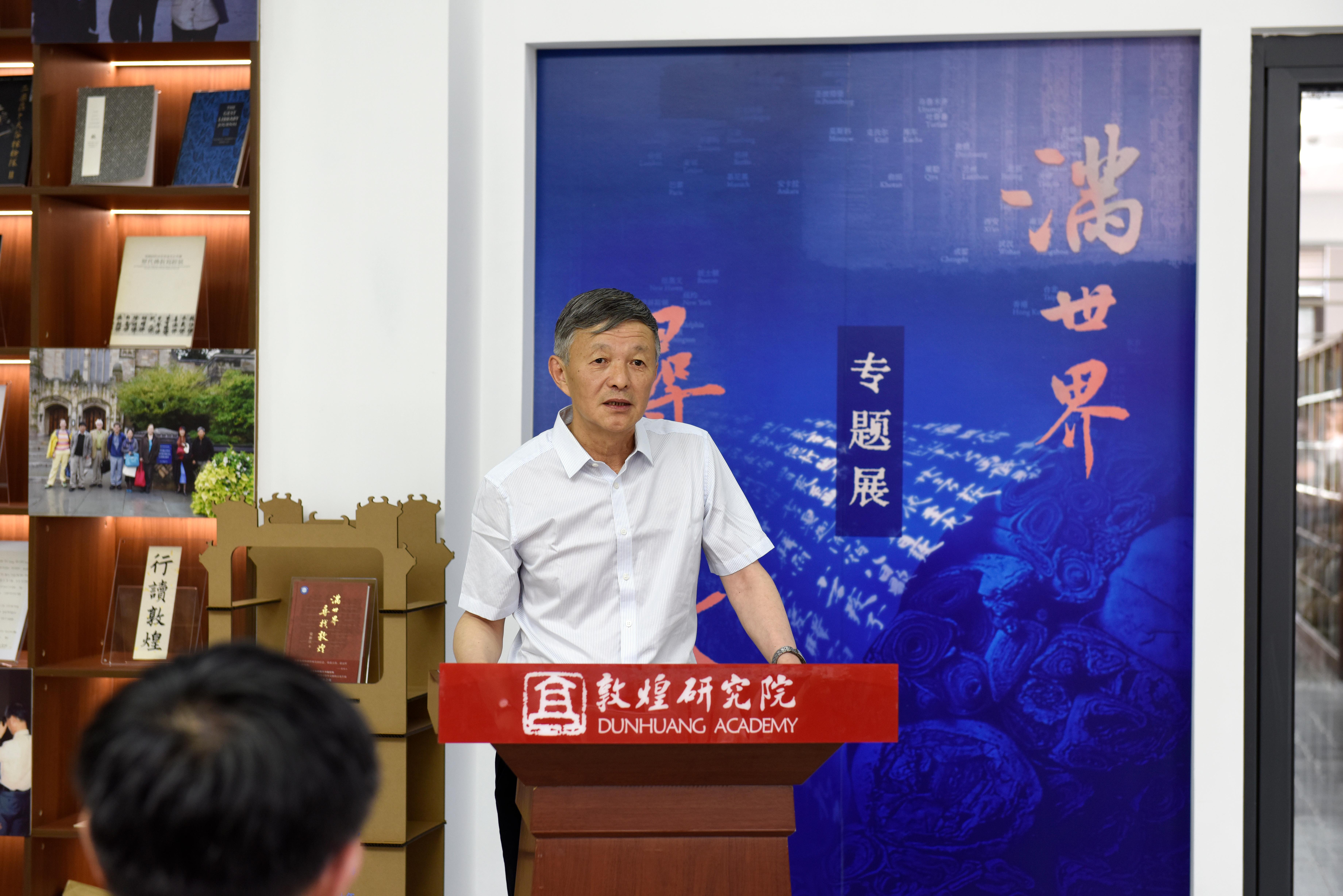 苏伯民院长在开幕式上致辞,他表示,“满世界寻找敦煌”不仅仅是一个展览,更是一次对敦煌学术成果的全面展示。它让我们看到了学者们在追寻真理的道路上所展现出的坚韧与智慧,也让我们看到了敦煌文化在世界范围内的广泛影响。感谢荣新江教授为敦煌学的发展所做出的卓越贡献,也感谢所有为敦煌学付出辛勤努力的学者们。正是由于无数致力于保护、研究、弘扬敦煌文化的学者们的无私奉献和不懈努力,才有了今天敦煌学蓬勃发展的面貌,希望通过这个展览,能够激发更多人对敦煌学的关注,进一步推动敦煌文化的研究和传播。