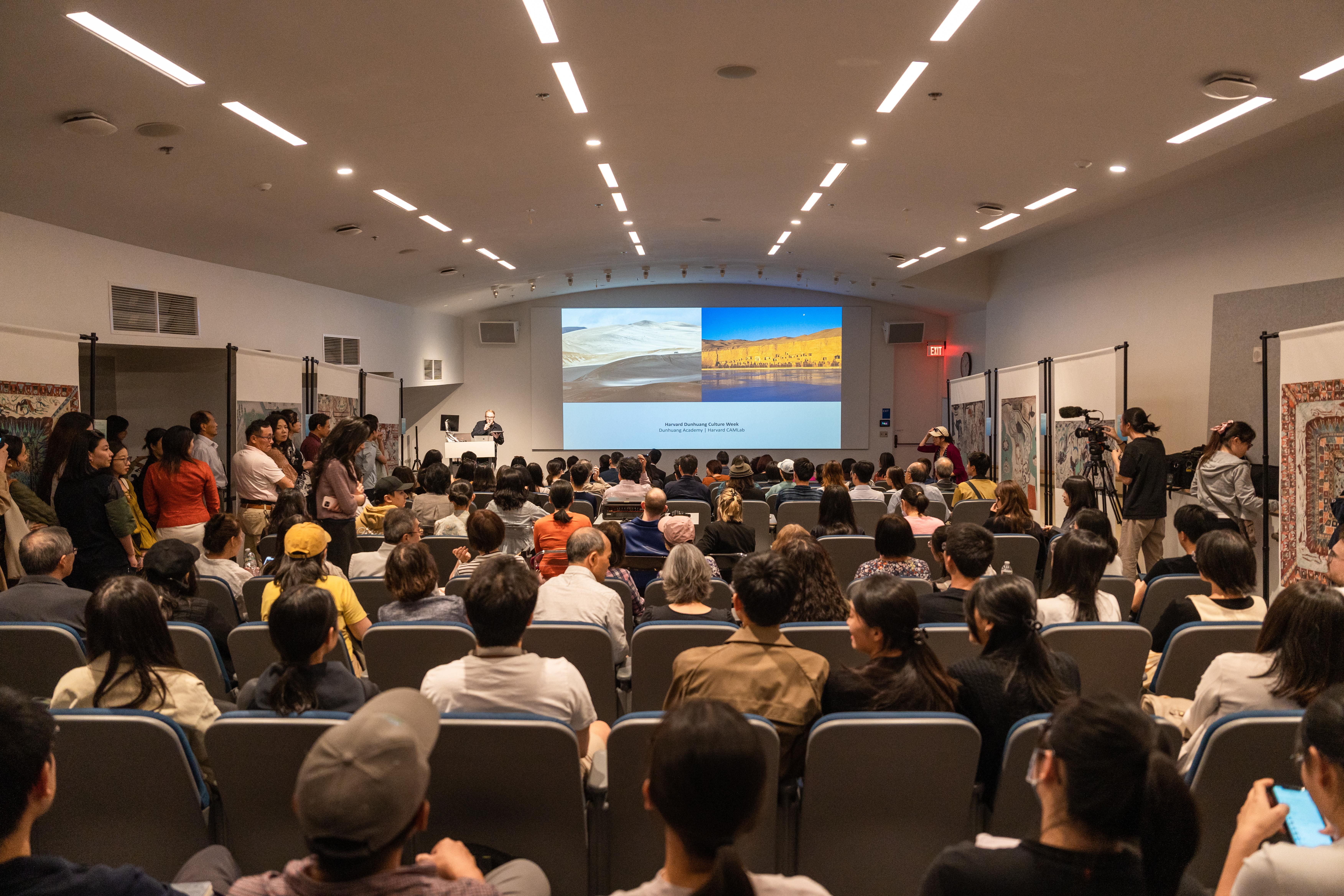 当地时间9月3日下午,由敦煌研究院、哈佛大学中国艺术实验室联合举办的“敦煌文化周”活动在哈佛大学CAMLab Cave及艺术与建筑历史系礼堂开幕。敦煌研究院院长苏伯民、哈佛大学中国艺术实验室主任汪悦进等出席活动。美当地学生和文化界人士300余人参加了现场活动。