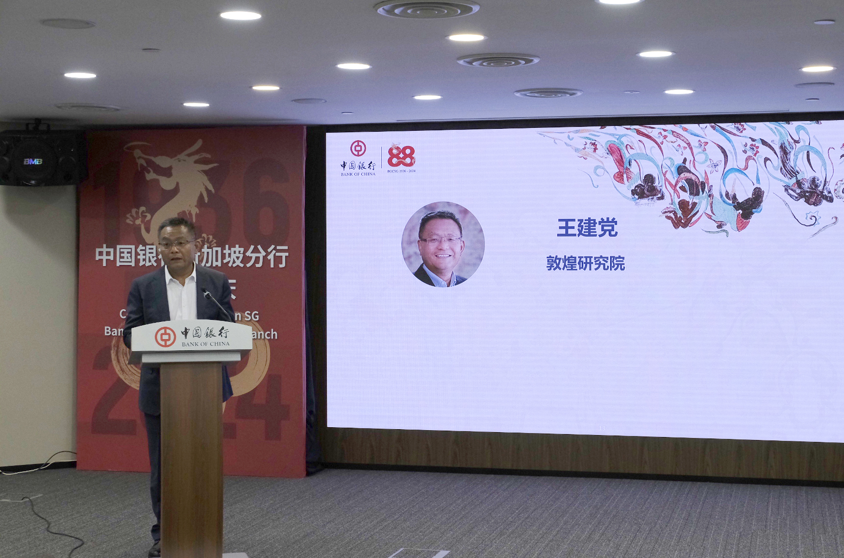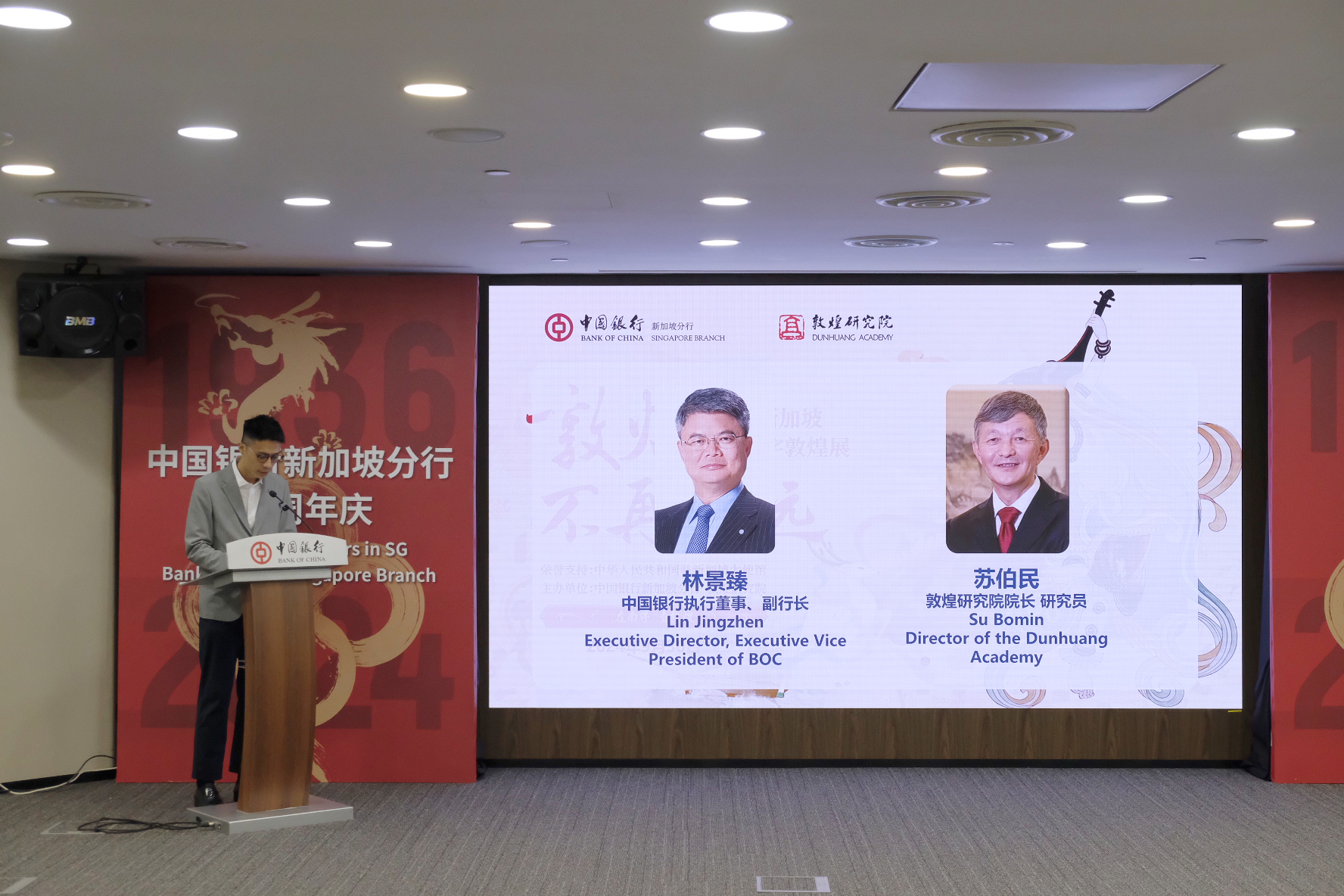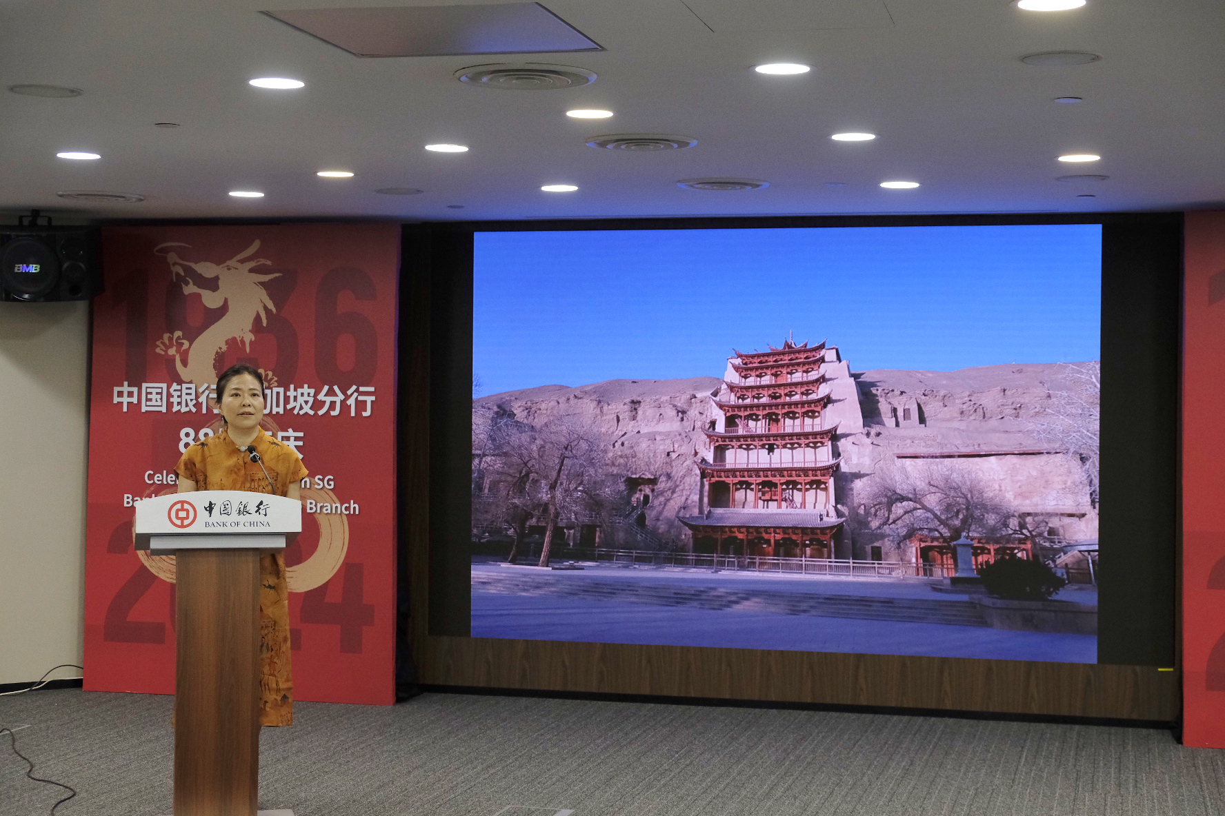 9月30日,在中华人民共和国成立75周年之际,由中国驻新加坡大使馆荣誉支持、中国银行新加坡分行和敦煌研究院联合主办的“敦煌不再遥远——走进新加坡”数字敦煌展在中国银行新加坡分行盛大开幕。中国驻新加坡大使曹忠明,中国银行新加坡分行行长史炜,敦煌研究院党委委员、纪委书记王建党以及来自社会各界的百余名嘉宾出席开幕式。
