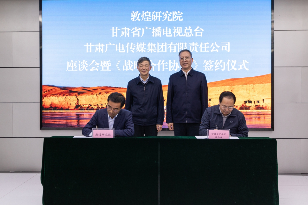 11月30日,敦煌研究院与甘肃省广播电视总台、甘肃广电传媒集团有限责任公司座谈会暨战略合作协议签约仪式在敦煌研究院举行。