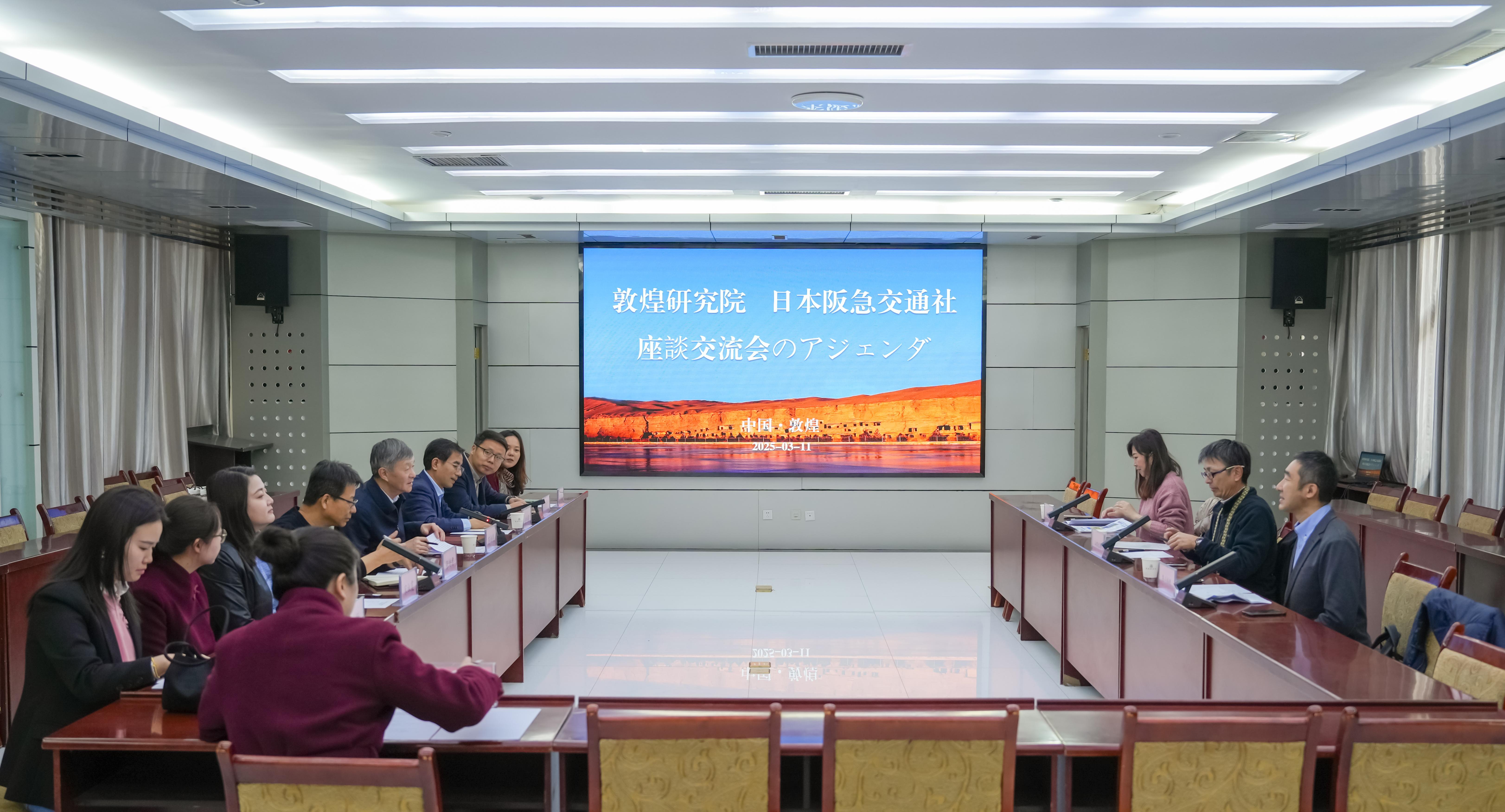 3月11日,敦煌研究院院长苏伯民与代表日本经济新闻社来访的株式会社阪急交通社山田丈晴和栗山裕教一行会面并友好座谈。