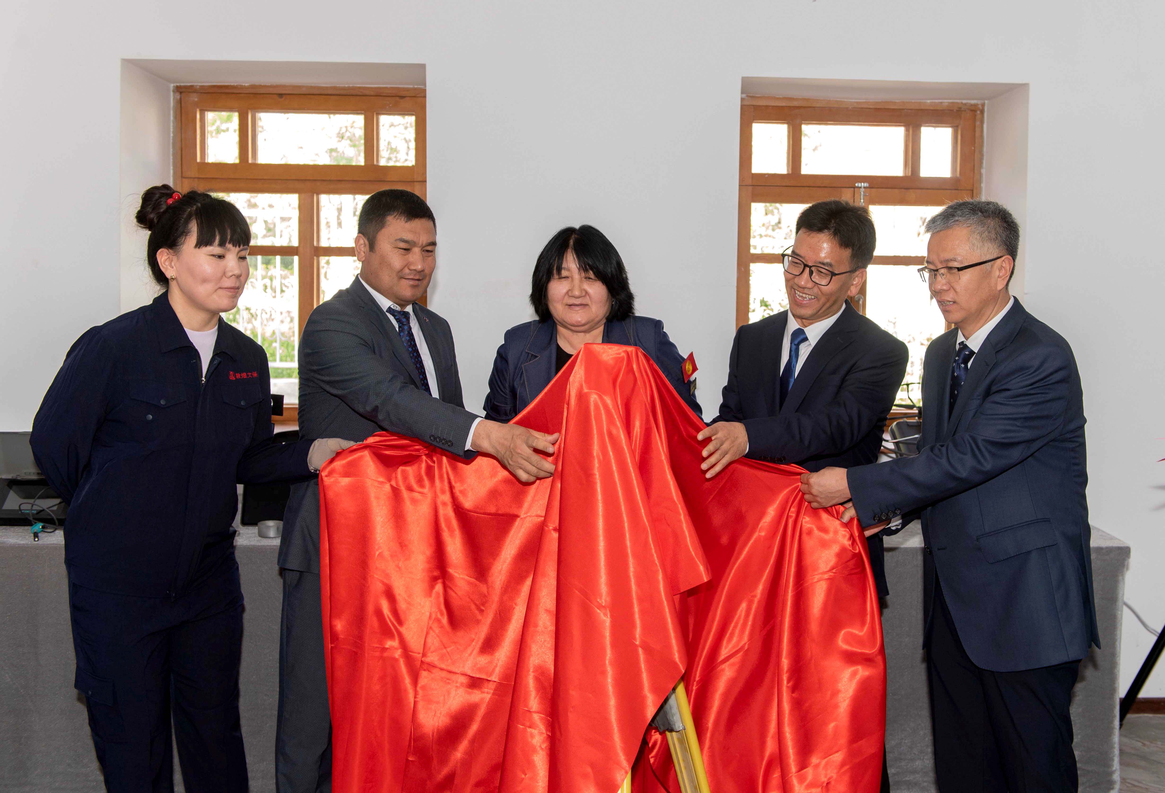 吉尔吉斯共和国文化、信息和青年政策部文化发展和政策执行司司长佐尔多绍夫·奇纳贝克,吉尔吉斯共和国文化、信息和青年政策部文化遗产保护局萨米别科娃·阿依占局长,吉尔吉斯共和国文化、信息和青年政策部历史和文化古迹保护安全检测中心主任杜伊沙纳利耶娃·艾辛,甘肃省科技厅副厅长张晓亮,敦煌研究院党委副书记郭青林共同为联合实验室捐赠专用设备揭幕。