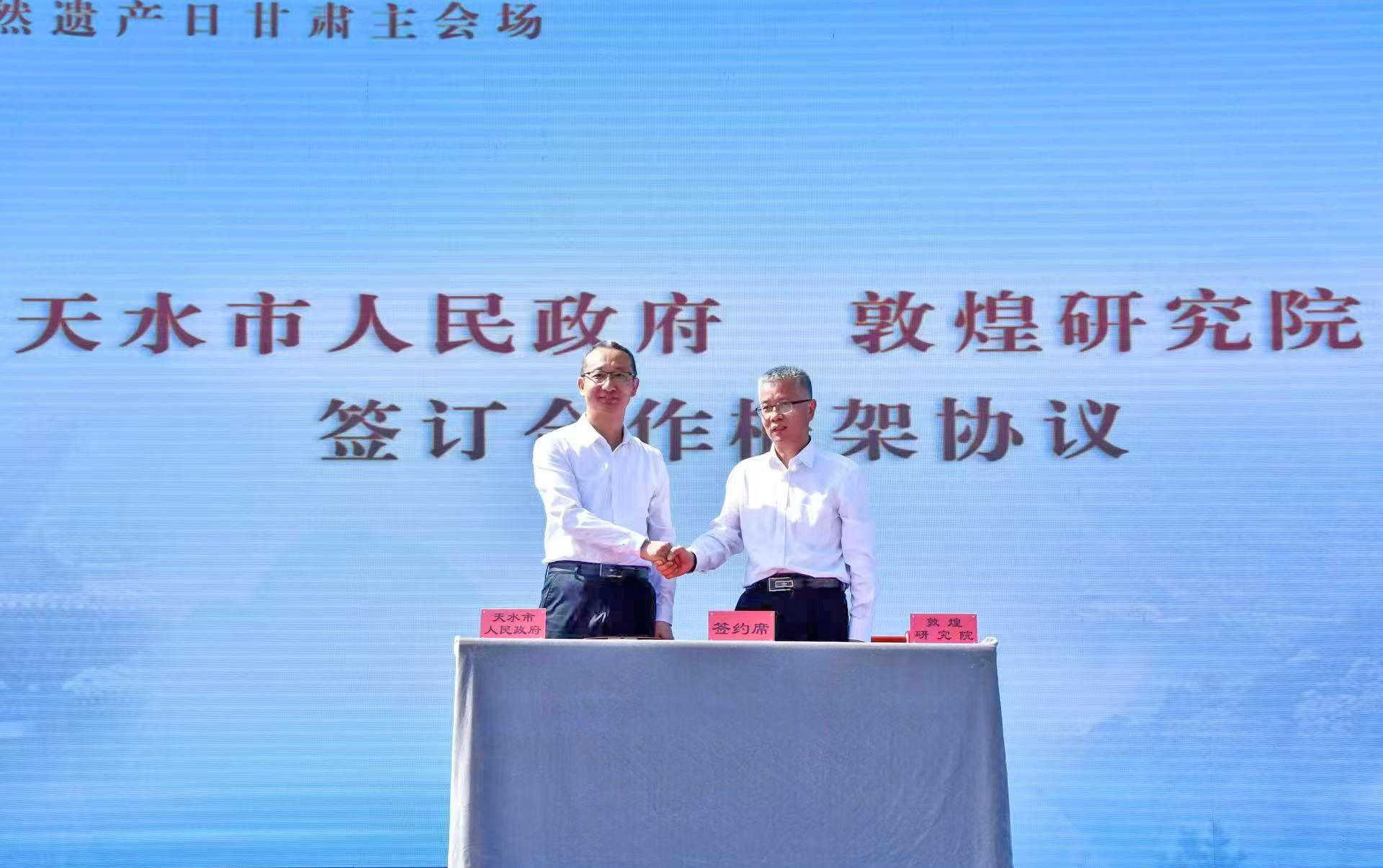 6月14日,在2025年文化和自然遗产日甘肃主会场活动上,天水市人民政府与敦煌研究院签订合作框架协议。