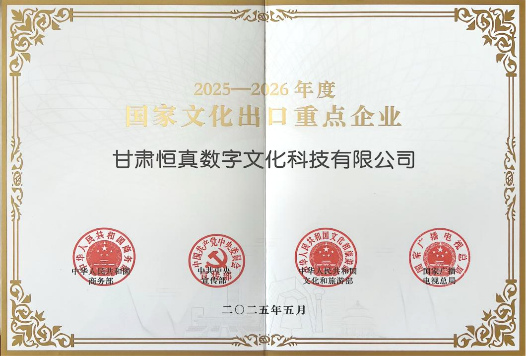 近日,商务部、中央宣传部、文化和旅游部、国家广播电视总局联合公布2025—2026年度国家文化出口重点企业和重点项目名单,敦煌研究院直属文化企业甘肃恒真数字文化科技有限公司首次入选国家文化出口重点企业。