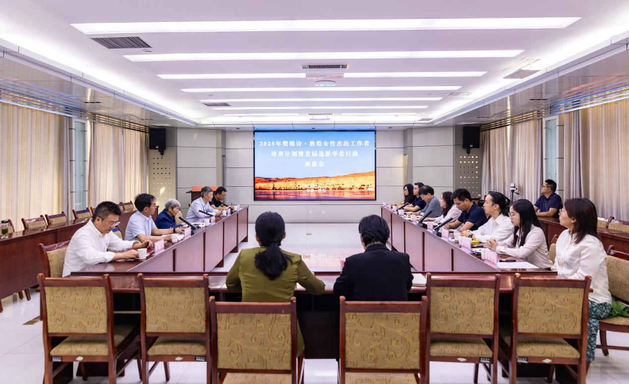 9月13日,2025年樊锦诗·敦煌女性杰出工作者培养计划暨首届选派学者行前座谈会在敦煌研究院举行。敦煌研究院名誉院长樊锦诗、国强公益基金会理事长李静、第一财经日报总编辑杨宇东、敦煌研究院院长苏伯民等出席座谈会并讲话。