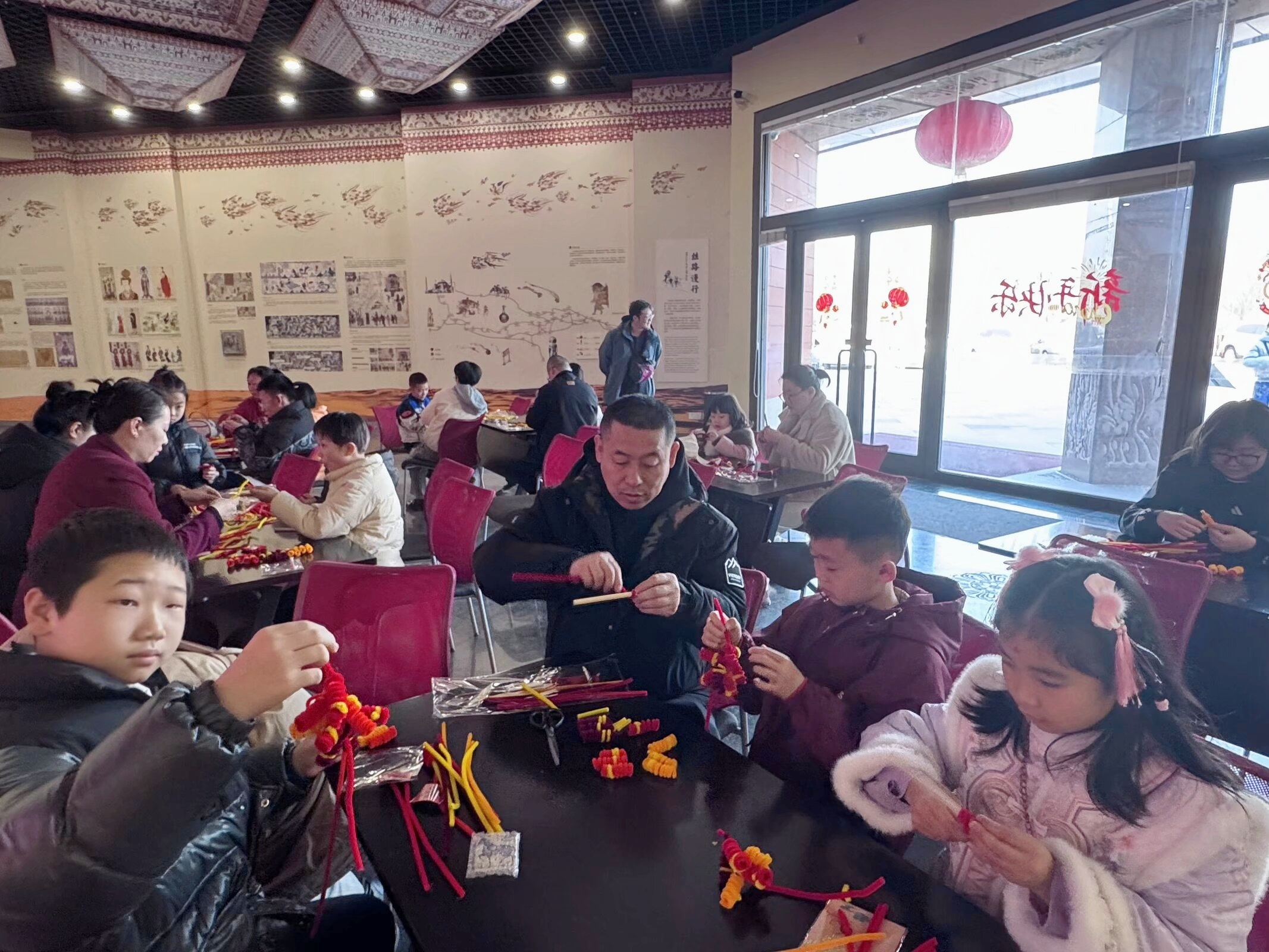 2月18日,敦煌研究院敦煌艺术馆举办“炮竹声声喜迎春——扭扭棒鞭炮挂件”主题社教活动。