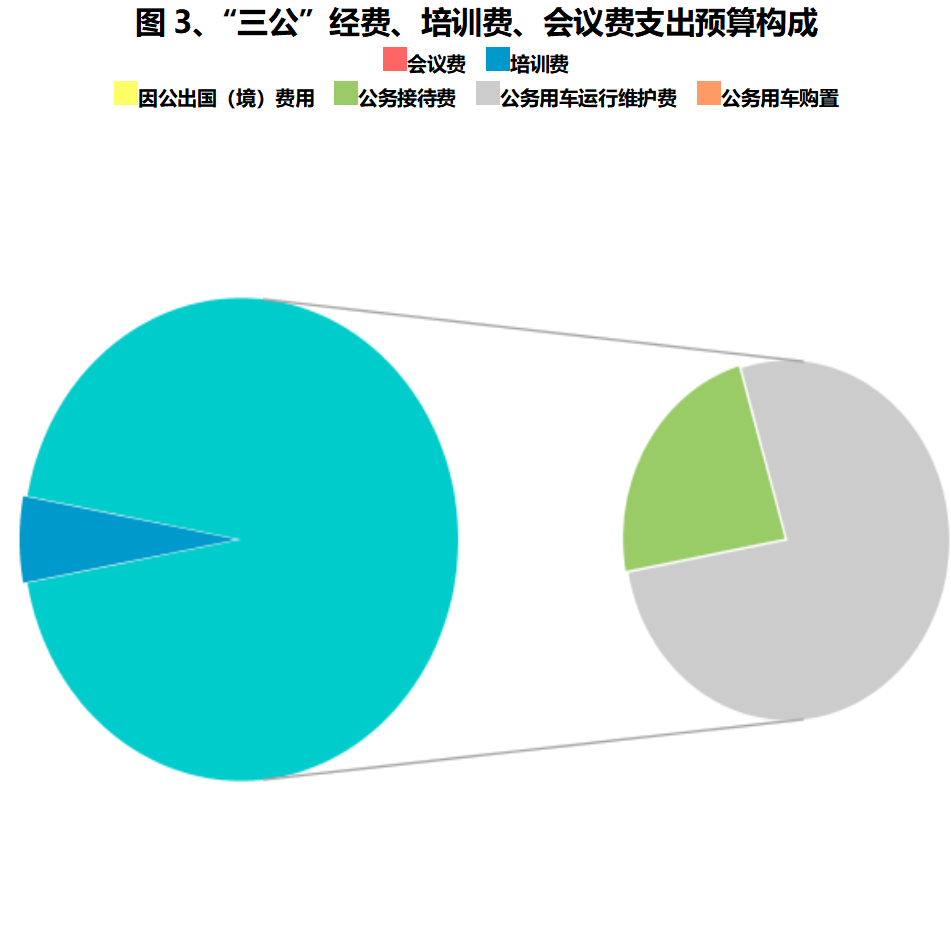 7、“三公”经费:指因公出国(境)费、公务用车购置及运行维护费和公务接待费。其中,因公出国(境)费反映单位工作人员公务出国(境)的国际旅费、国外城市间的交通费、住宿费、伙食费、培训费、公杂费等支出;公务用车运行维护费反映单位按规定保留的公务用车的燃料费、维修费、过桥过路费、保险费、安全奖励费用等支出;公务用车购置反映公务用车车辆购置支出(含车辆购置税、牌照费);公务接待费反映单位按规定开支的各类公务接待(含外宾接待)费用。