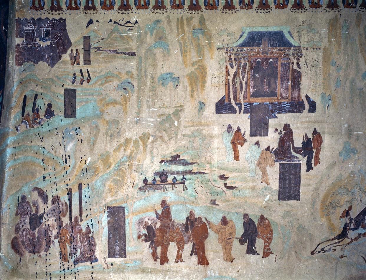 今天,两晋南北朝至隋唐的画作绝大多数已经失传。这种色彩明快的唐代青绿山水画,是莫高窟为后世留存的一段珍贵文化记忆。