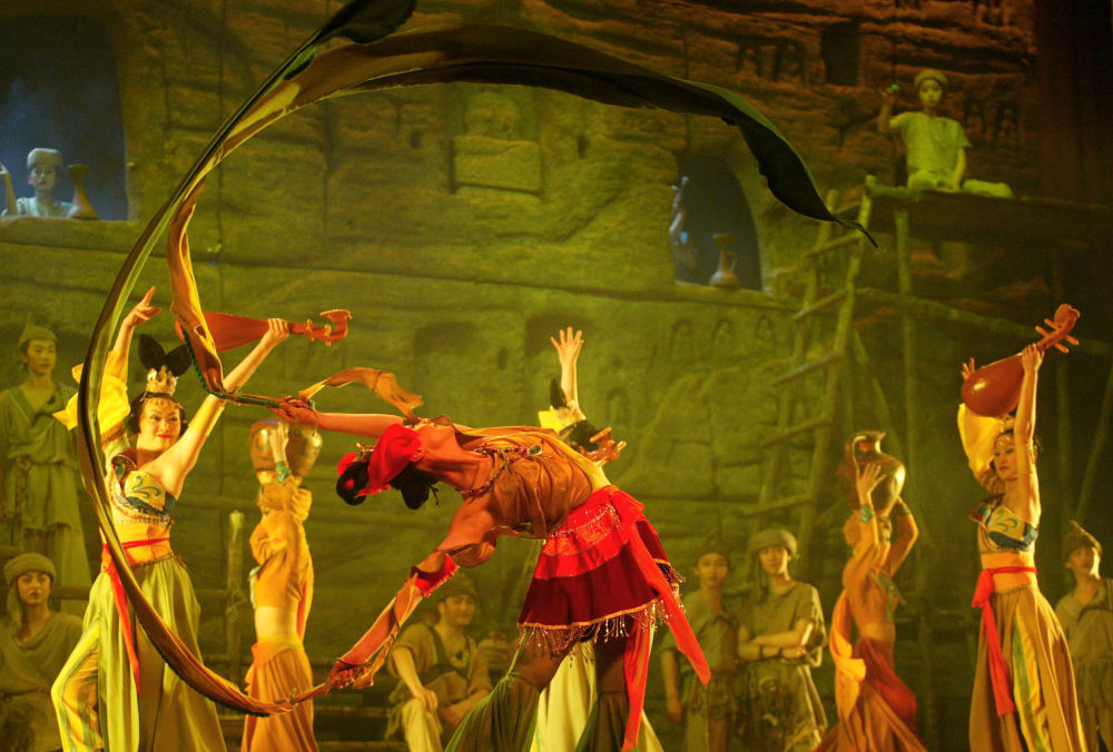 2005年1月19日,原创舞剧《大梦敦煌》在北京展览馆剧场上演。这部经典舞剧讲述了青年画师莫高为追求艺术的最高境界前往敦煌,并历经种种坎坷的故事。 新华社记者张传奇摄