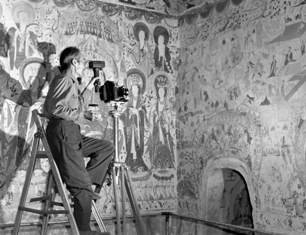 1984年,敦煌文物研究所的摄制工作者对壁画、塑像进行全面拍摄。新华社记者张生贵摄