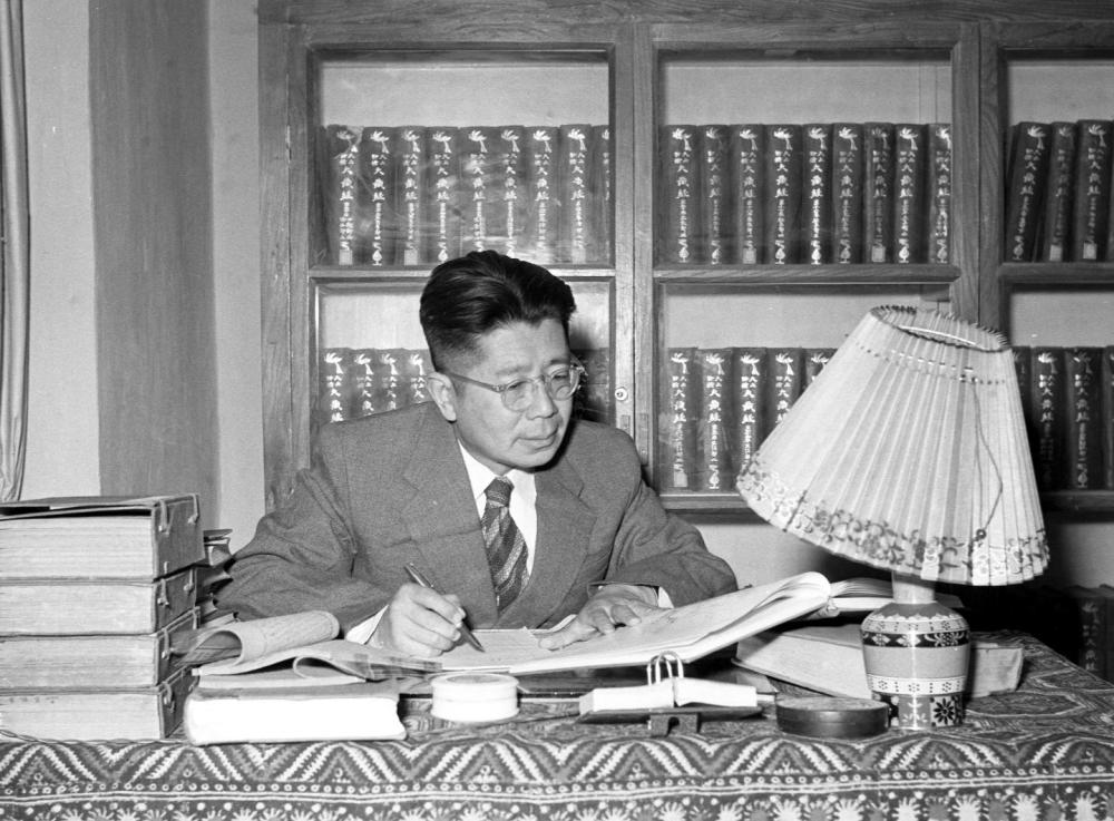 1956年,时任敦煌文物研究所所长常书鸿正在进行文物研究工作。新华社记者 刘庆瑞 摄
