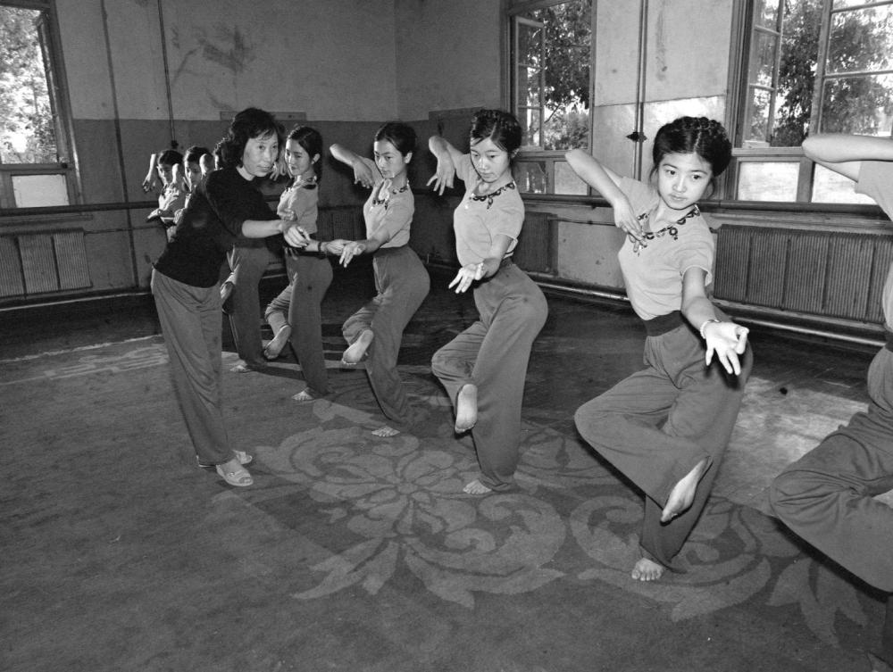 1982年,甘肃省艺术学校新开设一门敦煌舞基本训练课,重现敦煌壁画舞姿。 新华社记者敏钟杰摄