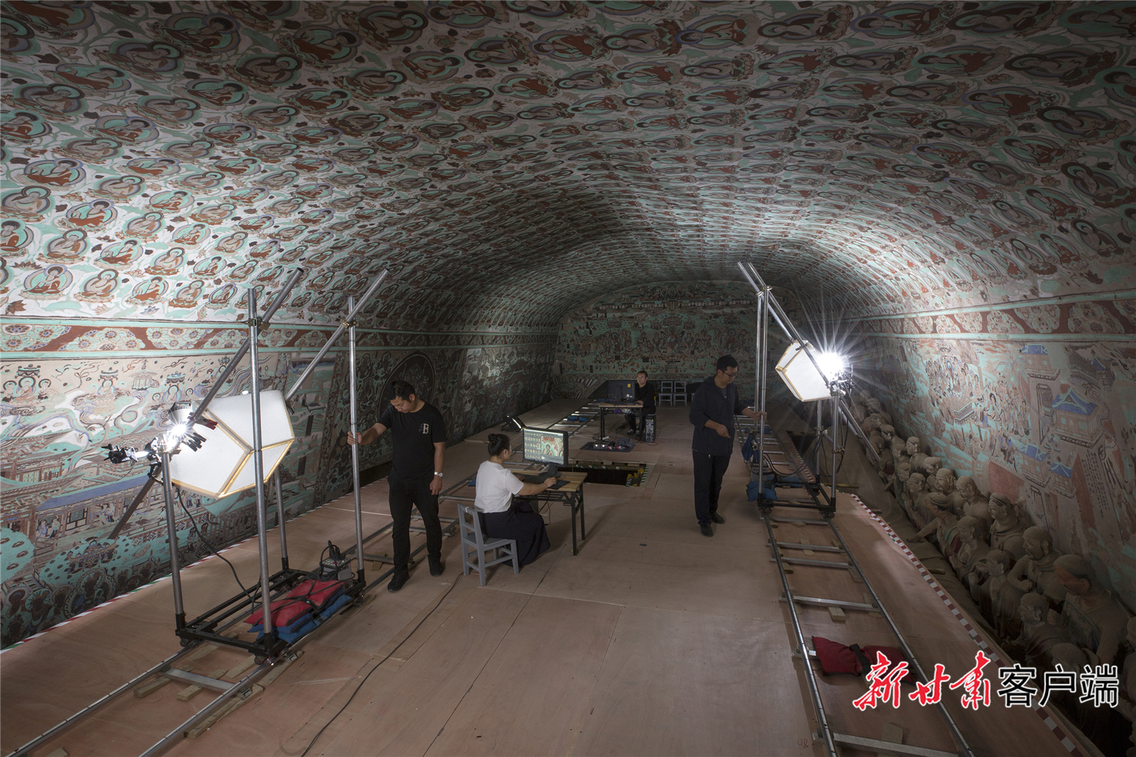 敦煌研究院文物数字化保护团队在莫高窟第158窟工作现场。