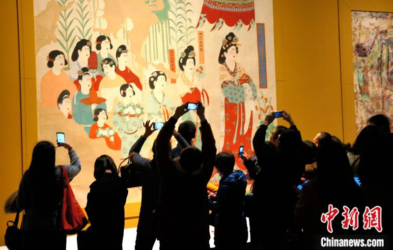 2017年1月,观众在成都博物馆参观“丝路之魂·敦煌艺术大展暨天府之国与丝绸之路文物特展”。樊甲山 摄