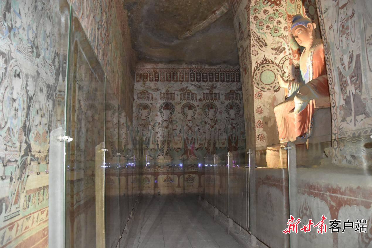 傍晚,游客陆续离去,被誉为“沙漠中的美术馆”的莫高窟渐渐安静下来。而在第55窟里,敦煌研究院文物保护技术服务中心的几名工作人员仍沉浸在“面壁”作业中。