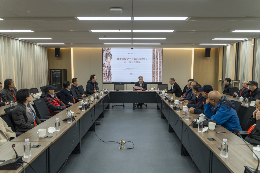 随后,召开了第六届理事会第一次全体会议。全体理事会成员以无记名投票表决形式选举产生了甘肃敦煌学学会会长、副会长、秘书长、法定代表人和副秘书长,他们分别是:敦煌研究院副院长张元林当选学会会长,敦煌研究院敦煌文献研究所所长赵晓星、兰州大学敦煌学研究所副所长魏迎春、西北师范大学历史文化学院教授刘再聪、河西学院学科建设与研究生工作处处长贾小军、甘肃简牍博物馆馆长朱建军当选副会长,敦煌研究院敦煌文献研究所副所长王东当选秘书长、法定代表人,甘肃简牍博物馆副馆长徐睿、敦煌研究院敦煌文献研究所副研究馆员黄京、兰州大学敦煌学研究所副教授马振颖、西北师范大学历史文化学院教授秦丙坤、河西学院历史文化与旅游学院副教授刘森垚当选副秘书长。