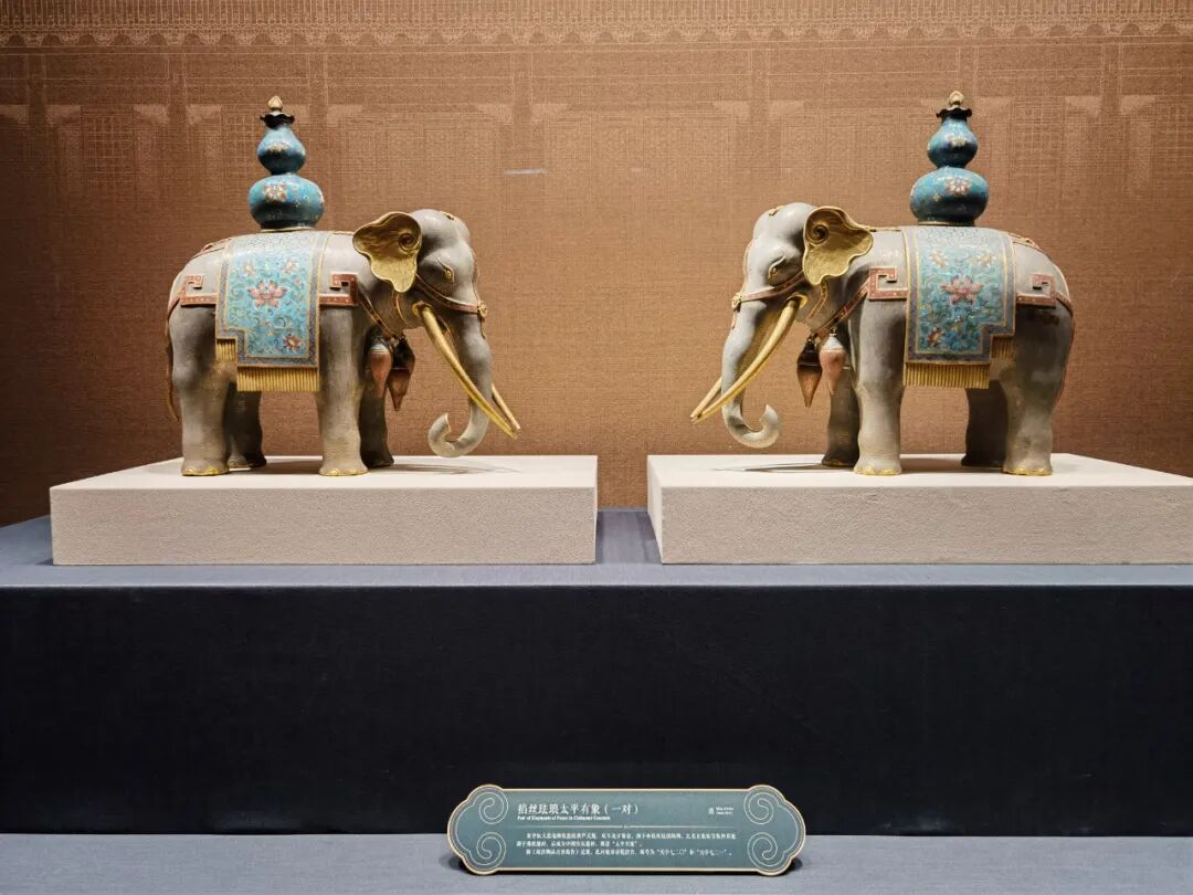 故宫展出的掐丝珐琅太平有象。(中央广播电视总台央视记者程爱华拍摄)
