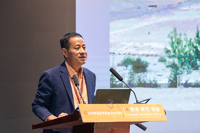 敦煌研究院副院长张元林在开幕式上致辞。他表示,继承是敦煌艺术延续的根基,研究是敦煌艺术发展的动力,创新是敦煌艺术繁荣的关键。本次研讨会搭建了敦煌艺术国际化研究交流的平台,希望国内外专家学者、研究机构增进密切往来,互学互鉴,合作共赢,共同推动煌艺术的研究、传承与创新发展,让敦煌艺术焕发出新的时代生机与活力。
