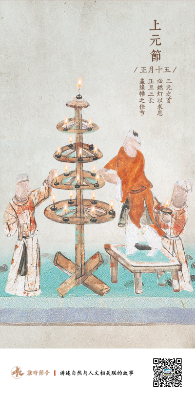 想要留住这般美好,将农历正月称为“元月”,将本月十五的“夜”称为“宵”,便有了一年一度的“元宵”佳节,又称“上元节”。是夜,皓月高悬,地上的人们挂起万盏彩灯,在此一元复始、大地回春的夜晚欢娱祈福,以示庆贺。