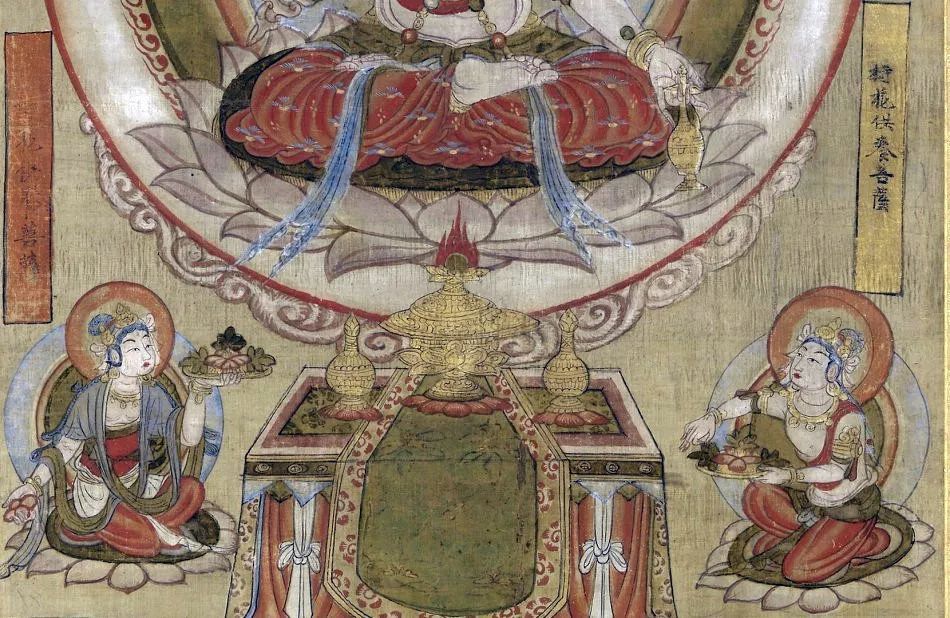 除了将香气随身携带,香炉后来更多被用于静物陈设,这在敦煌的壁画以及藏经洞出土的绢画、麻布画中都有体现。