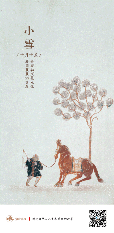 《月令七十二候集解》:“小雪,十月中。雨下而为寒气所薄,故凝而为雪,小者未盛之辞。”零星的小雪,是此时的物象,也是此时的意象——轻盈的浪漫。