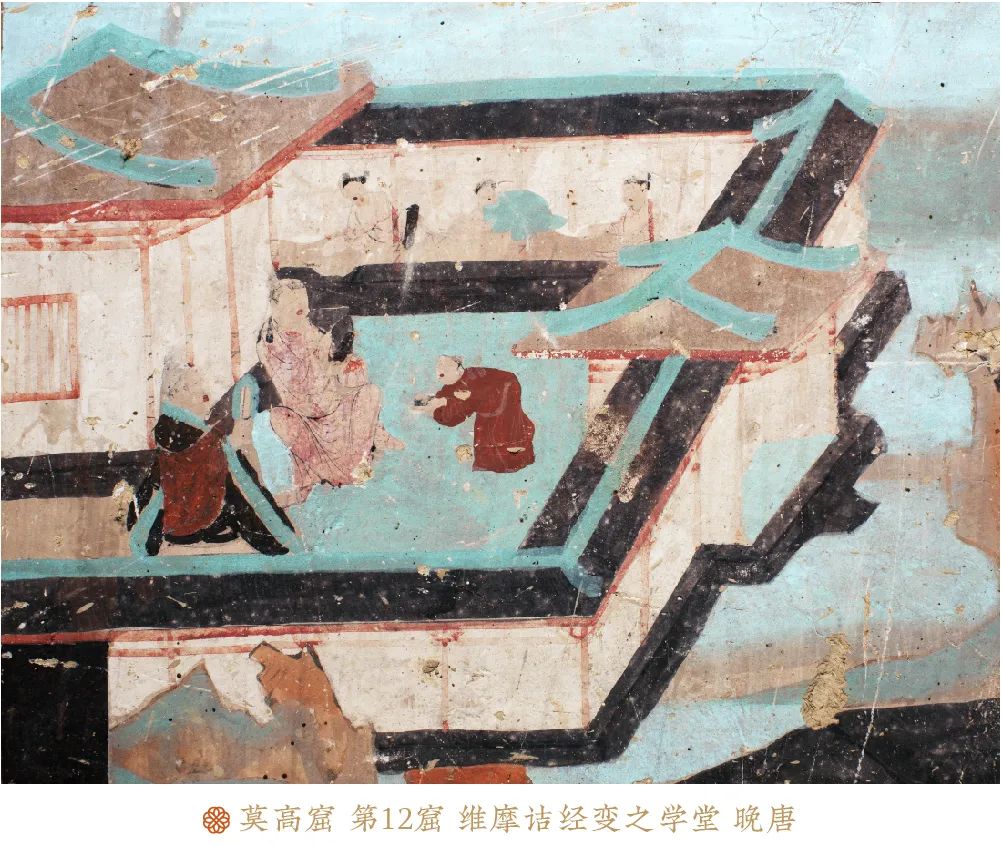 维摩诘居士于旁侧坐,手执麈尾似在论说。