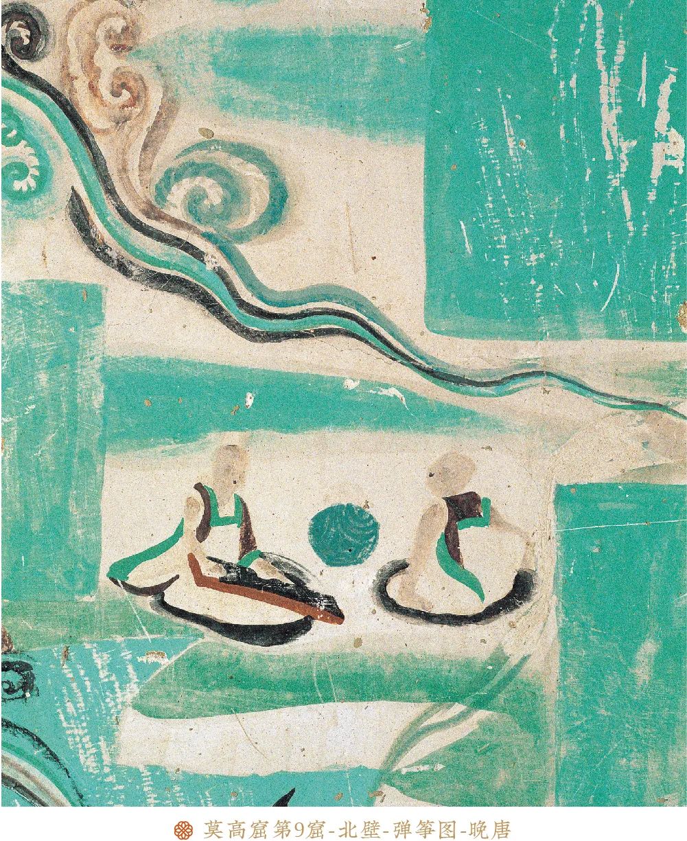 冬日寒冷,却因万物翕伏而显得安静可爱。腊酒自盈樽,金炉兽炭温。想来独酌也无趣,不如邀上一知己。莫高窟第9窟的壁画里,绘有一幅简单的抚琴图。画中两人相对而坐,中间放一陶罐,一人双手抚琴,一人侧身