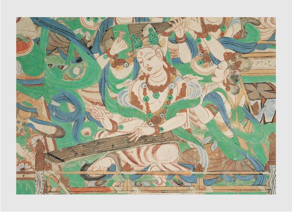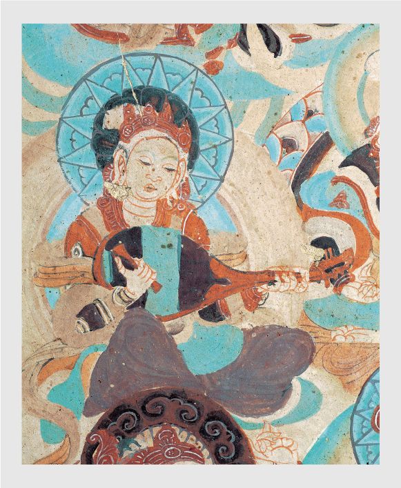 在敦煌石窟诸多有乐舞场景的壁画中,多有琵琶出现。琵琶以高达700余次的出现频率,成为敦煌壁画的绝对音乐象征。