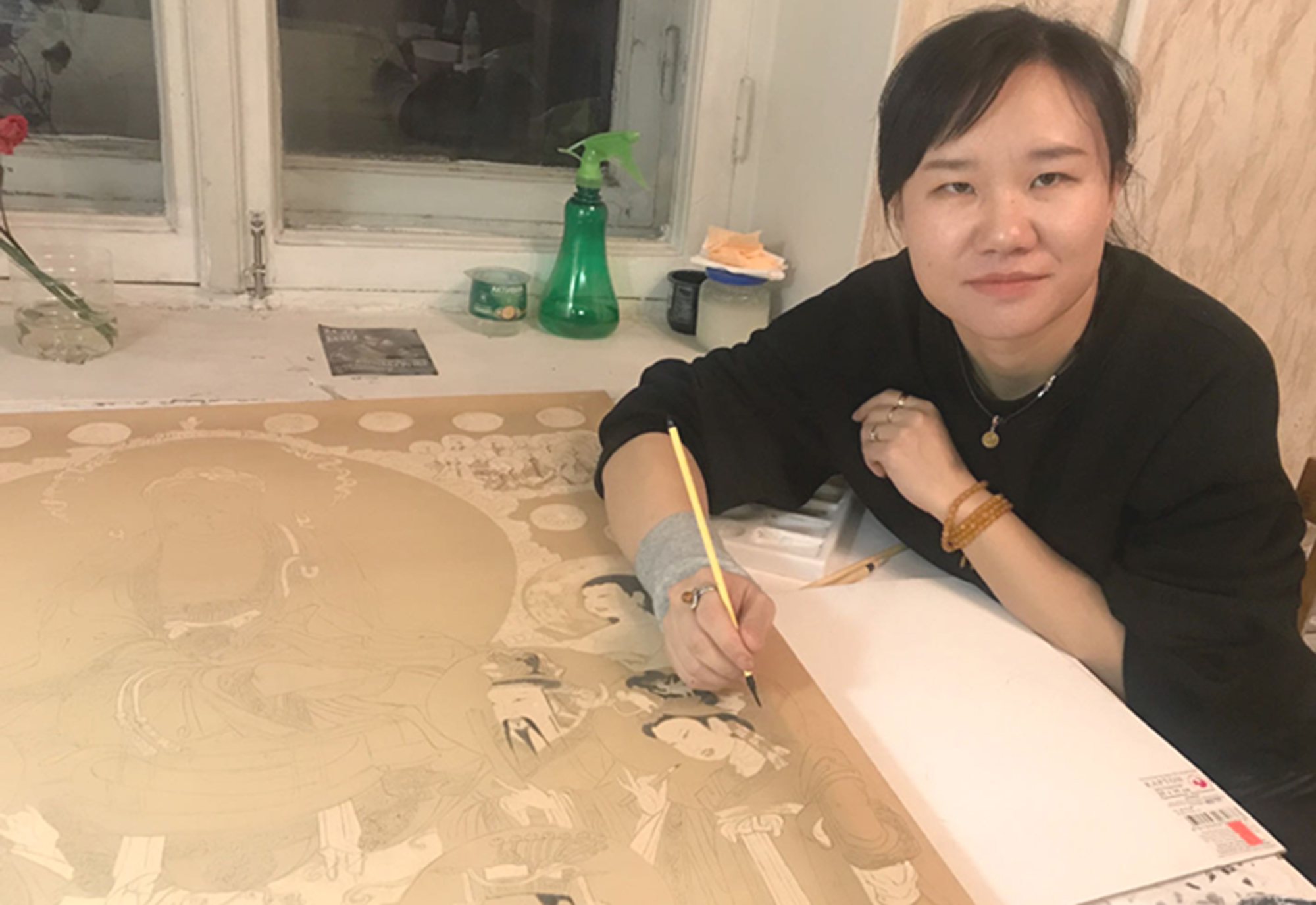 9.2022年为中国国家版本馆特藏室“文化教育”主题窟设计并绘制壁画《天之木铎》(第一作者),参与七个洞库的穹顶《天籁祥音》的绘制,被中国国家版本馆收藏。