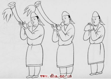 南北两壁下部的供养人,具有鲜明的时代特征。建立北凉政权的沮渠氏,属匈奴后裔,在这些供养人中能看到匈奴人的一些特点。这些人均着袴褶,是北方少数民族的传统服饰,上自王公贵族,下至军士百姓都穿此种服装。褶为上衣,款式类似现代的短大衣,圆领或交领,对襟或左衽,窄袖。画中男供养人头戴幅巾,上身穿的就是交领窄袖褶衣。左衽是北方少数民族和西域胡人的衣服款式,与汉族传统以右衽为习尚不同。所谓“右衽”即衣襟在胸前相交,左襟压右襟,在右腋下挽结。而北方少数民族则相反,是右襟压左襟,在左腋下挽结,故称“左衽”,此窟供养人被民族学家认为具有匈奴族的特征。