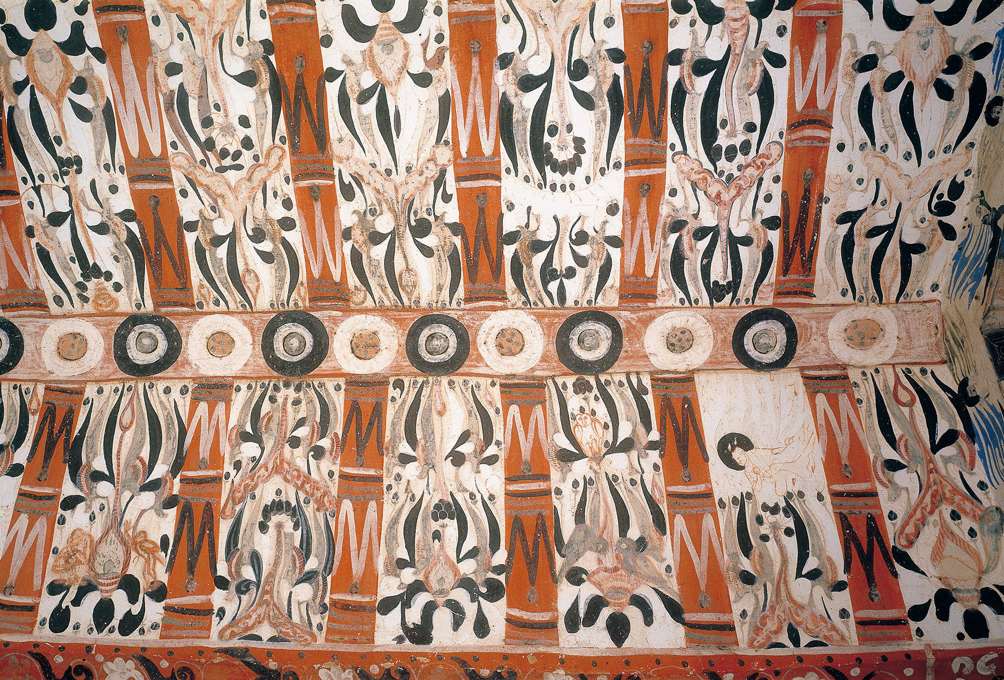 甬道顶、南壁、北壁存北周画忍冬图案。