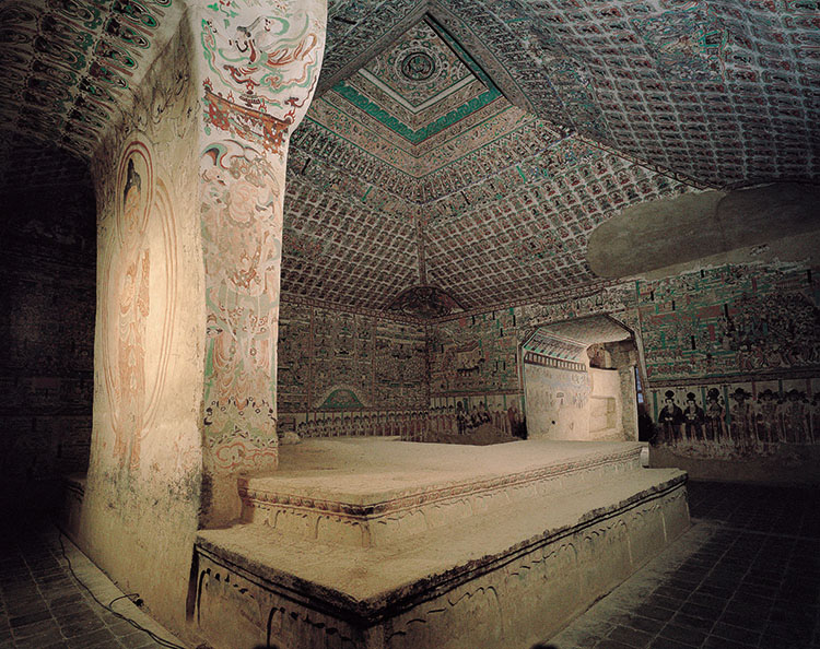 此窟开凿于五代,元代重修。窟形为覆斗顶殿堂式洞窟。