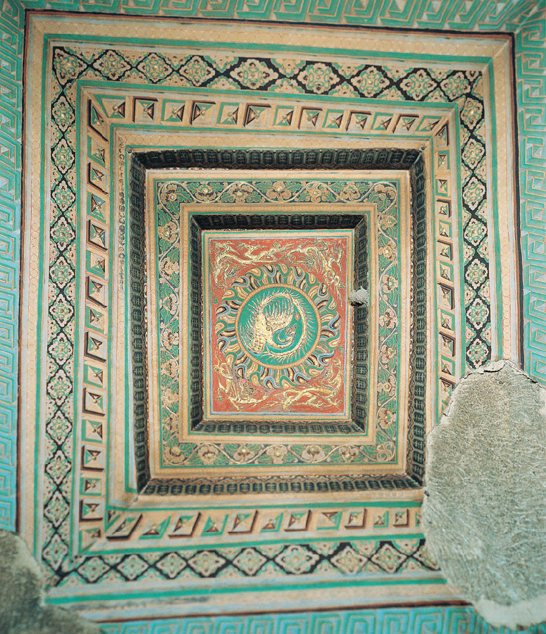 窟顶-团凤莲花四龙纹藻井
