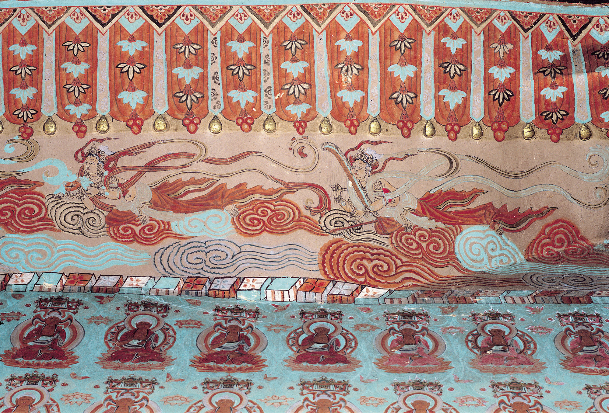 莫高窟第327窟-窟顶南披-献花伎乐飞天-西夏