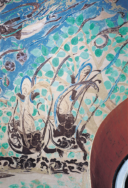 西壁龛顶 菩提树双飞天