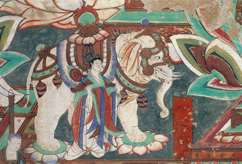 北壁-弥勒经变之象宝、女宝-中唐