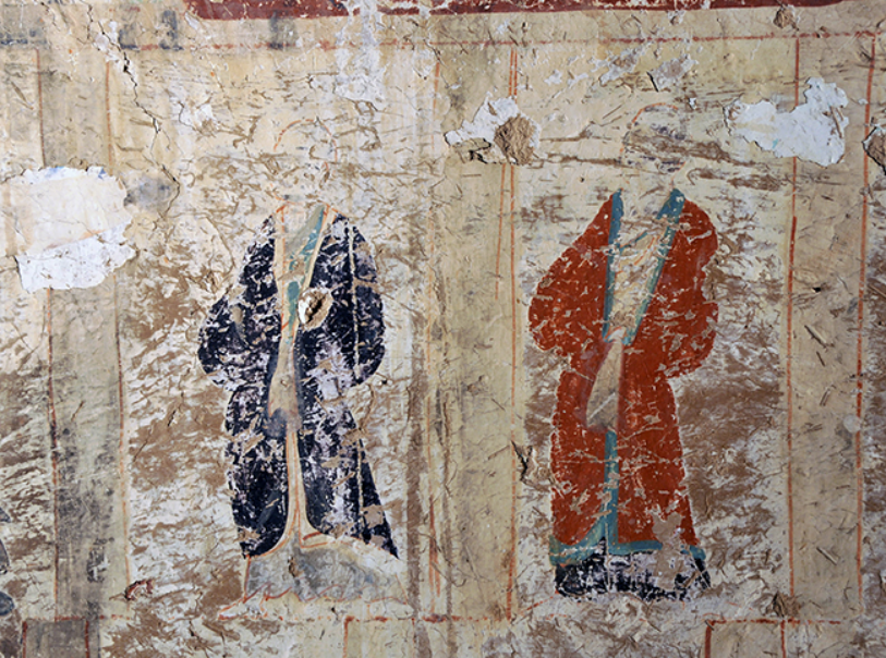 东向面龛内清重修坐佛一身,龛内存北魏画飞天、菩萨各数身,龛楣画忍冬化生;龛外北侧存北魏塑菩萨一身,画飞天、菩萨各数身。塔座下存西魏画男女供养人、比丘、比丘尼、力士各数身。男供养人身着圆领窄袖衫,下袴褶。女供养人身披帔巾,上着大袖襦,下着间色裙,与莫高窟西魏时期第285窟内供养人服饰相同。