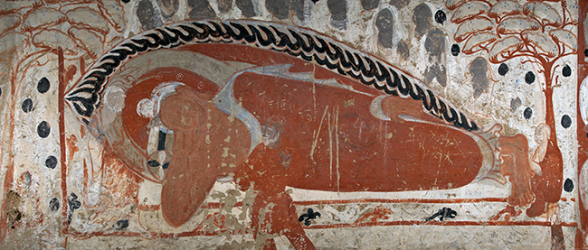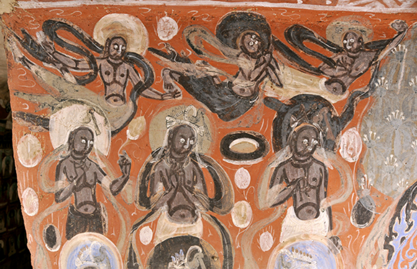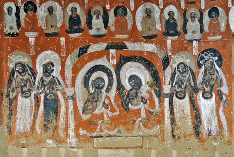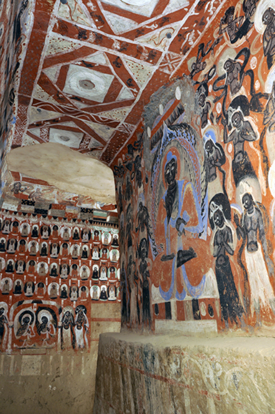 东壁后部和窟顶东侧现存壁画为隋代所绘,技法成熟,是西千佛洞为数不多的隋代壁画的代表之作。
