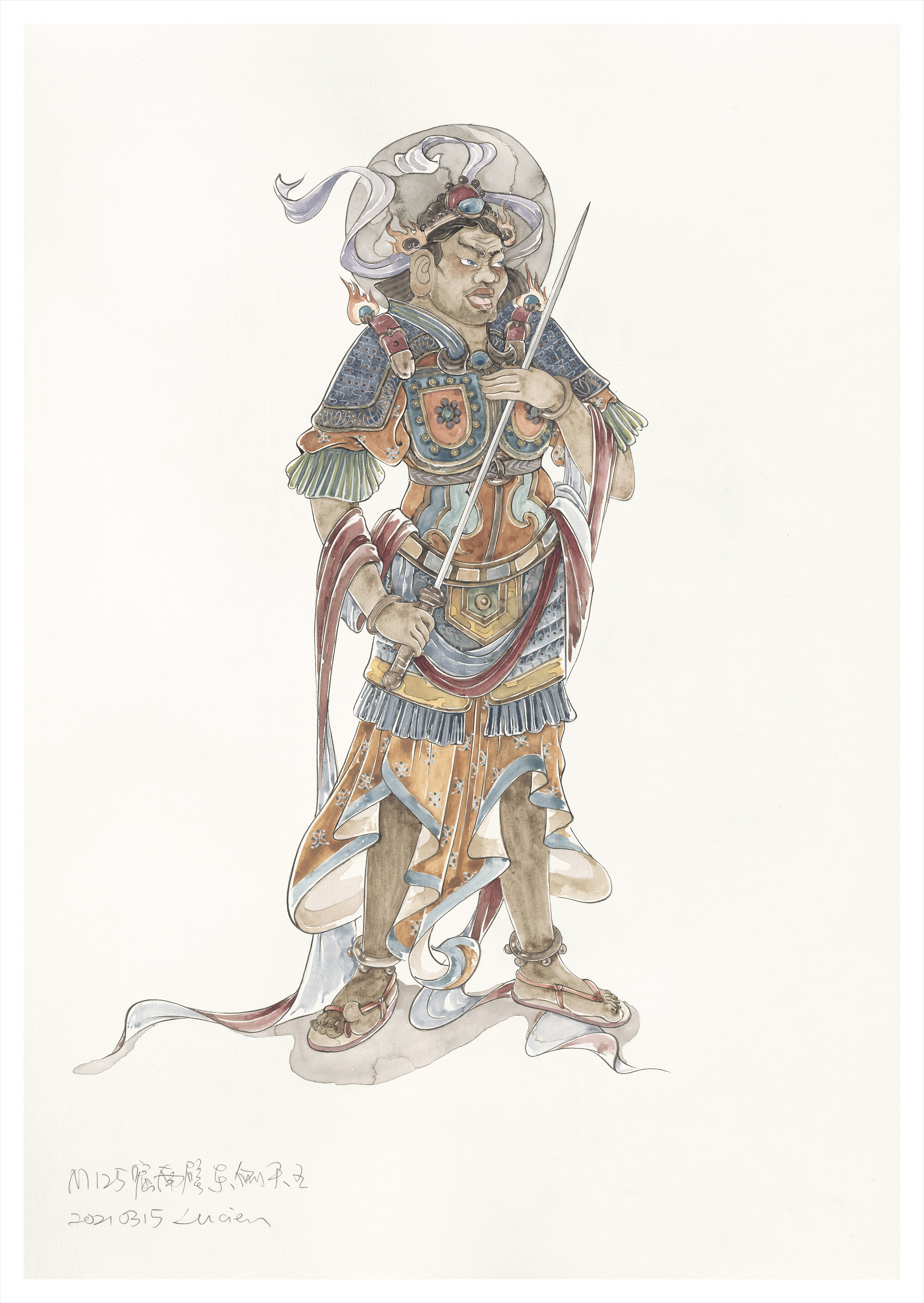 莫高窟盛唐第194窟西壁龛内北侧彩塑天王服饰-刘元风