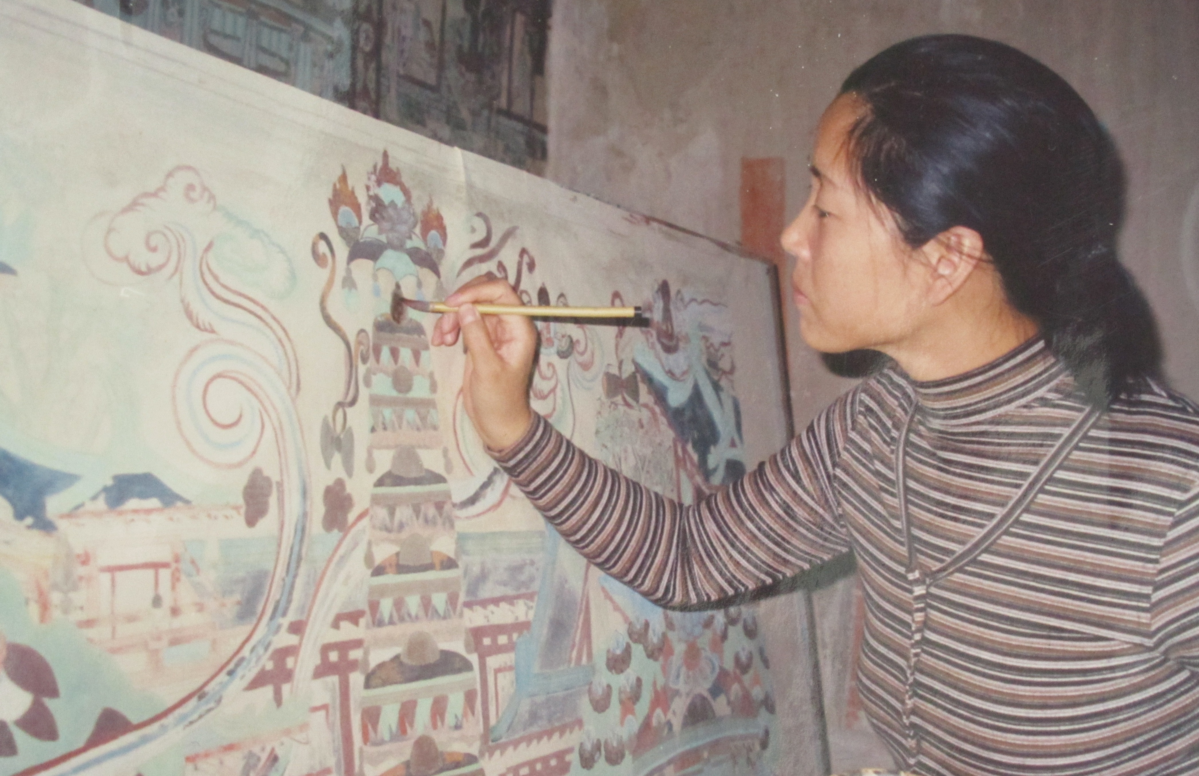 9.莫高窟第220窟《东壁》整壁;1988年——1993年临摹(独立完成),(敦煌研究院藏)。曾先后赴日本、美国、法国以及北京、上海、杭州等多地展出;