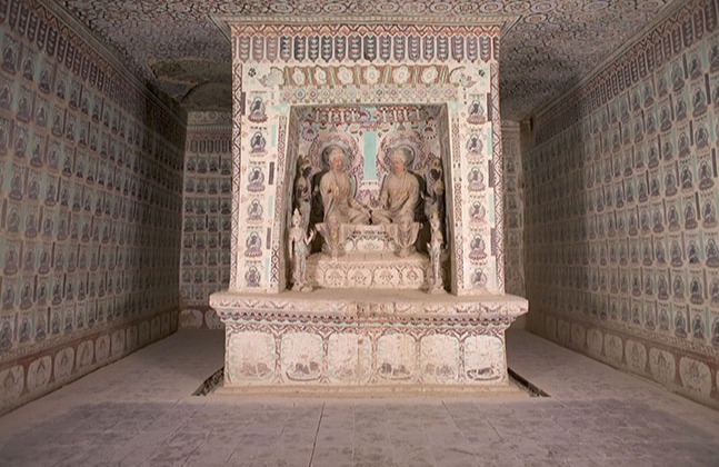 时代:隋(五代、西夏重修) 形制:覆斗形顶、西、北壁设佛床。